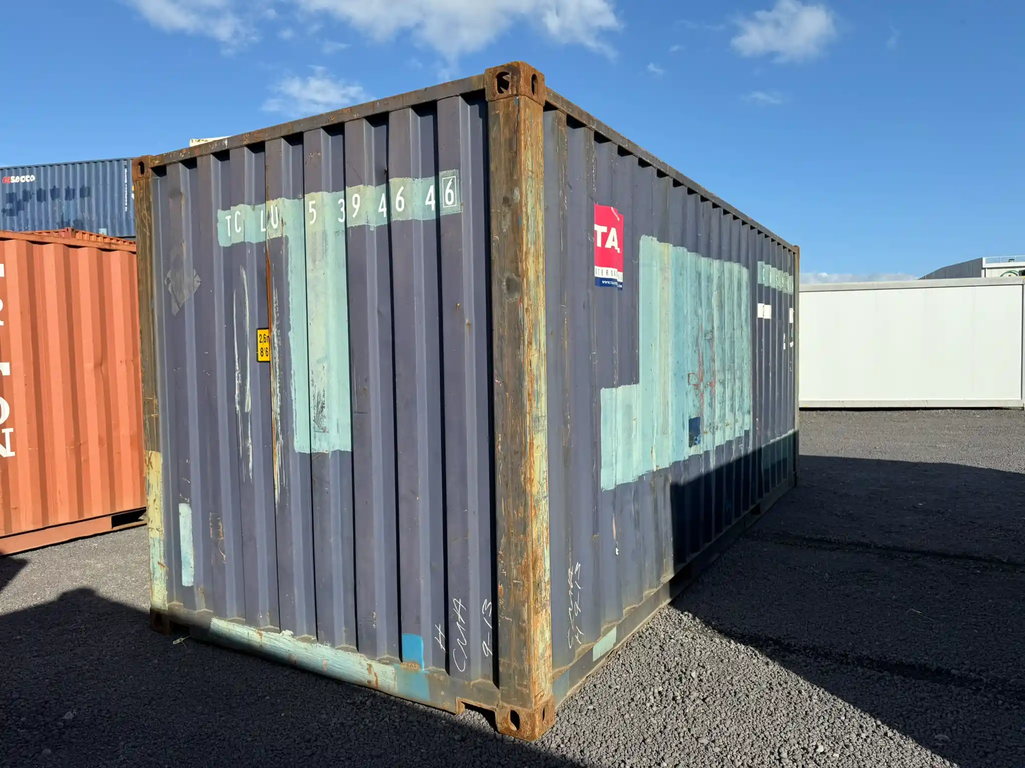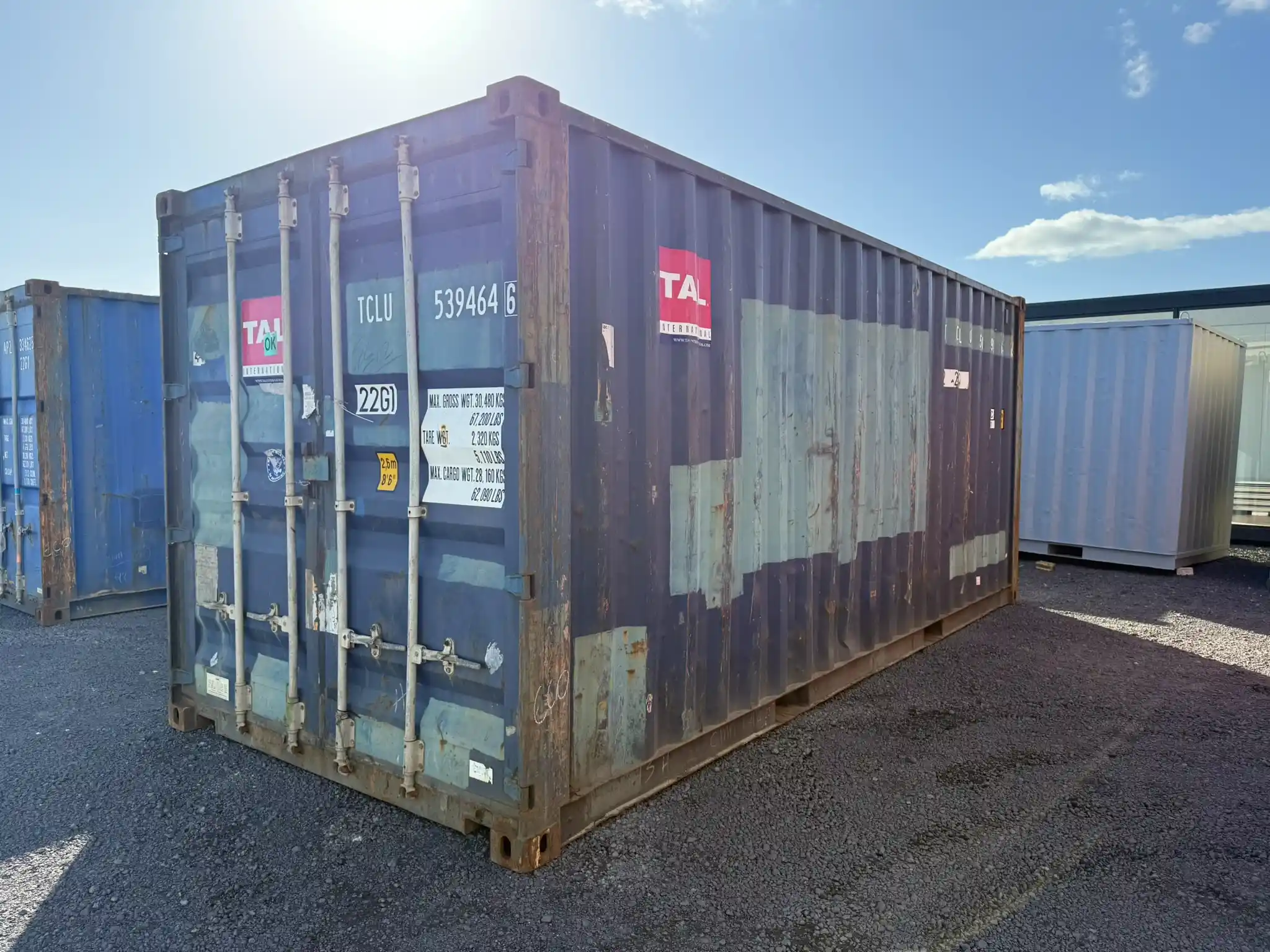 Este contenedor usado de 20 pies de TAL International es una solución práctica, económica y versátil para el almacenamiento y los proyectos a medida. La clase B / WWT (Wind & Watertight) garantiza su total estanqueidad al viento y al agua, lo que lo hace ideal para su uso en tierra, aunque ya no esté certificado para el transporte marítimo internacional. Es un contenedor robusto, funcional y fiable, disponible en un elegante color azul.